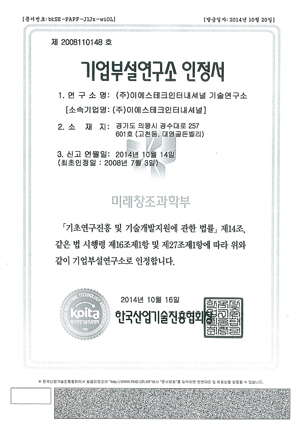 Certificate of Annex research institute > Certificate